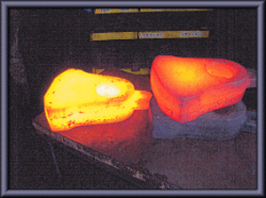 従来、破砕機用ハンマーは鋳造が常識でしたが、研究の上、鍛造品も製作しております。